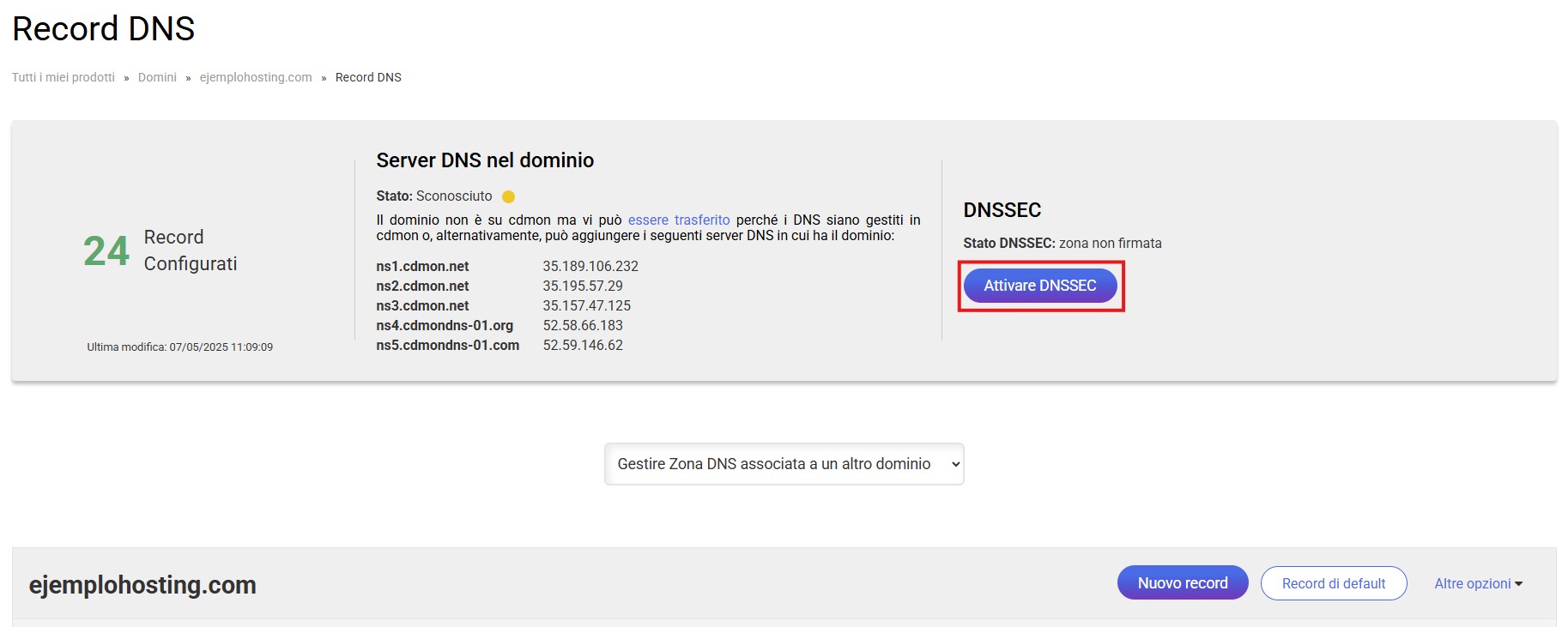 3.- Accedere alla zona DNS che si desidera attivare DNSSEC.