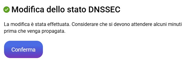 3.- Quando si attiva apparirà un pop-up che indica che lo stato di DNSSEC è stato modificato.