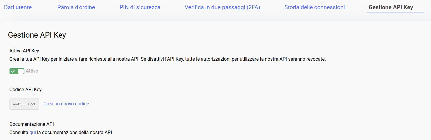 È possibile rigenerarlo o disabilitare l'API chiave in qualsiasi momento.