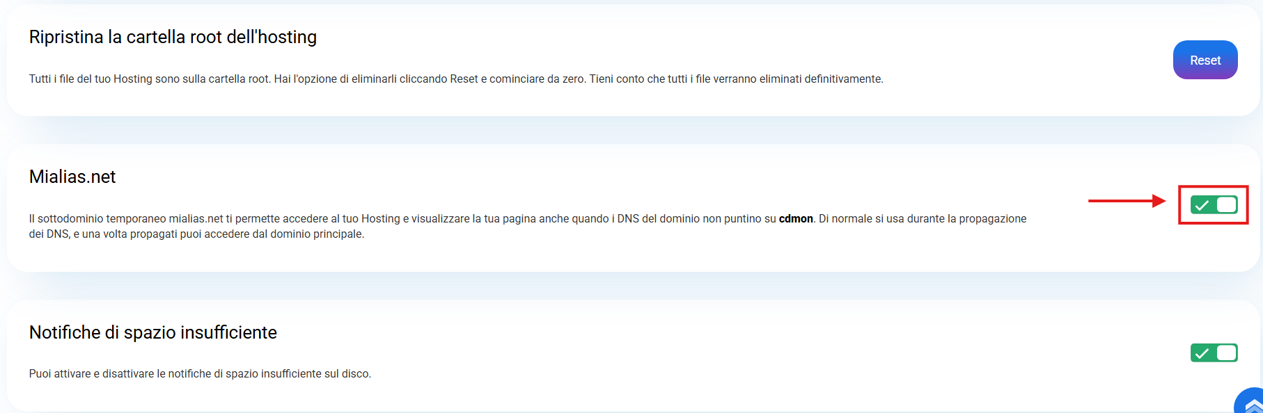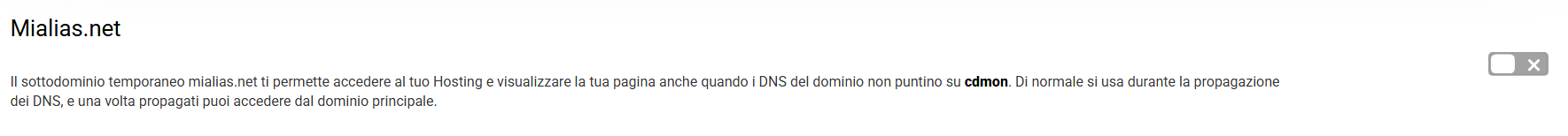 Una volta che il dominio è già rivolto all'hosting e l'IP si è diffuso, non è più necessario utilizzare mialias.net e, in determinate circostanze, potresti essere interessato a disabilitarlo.