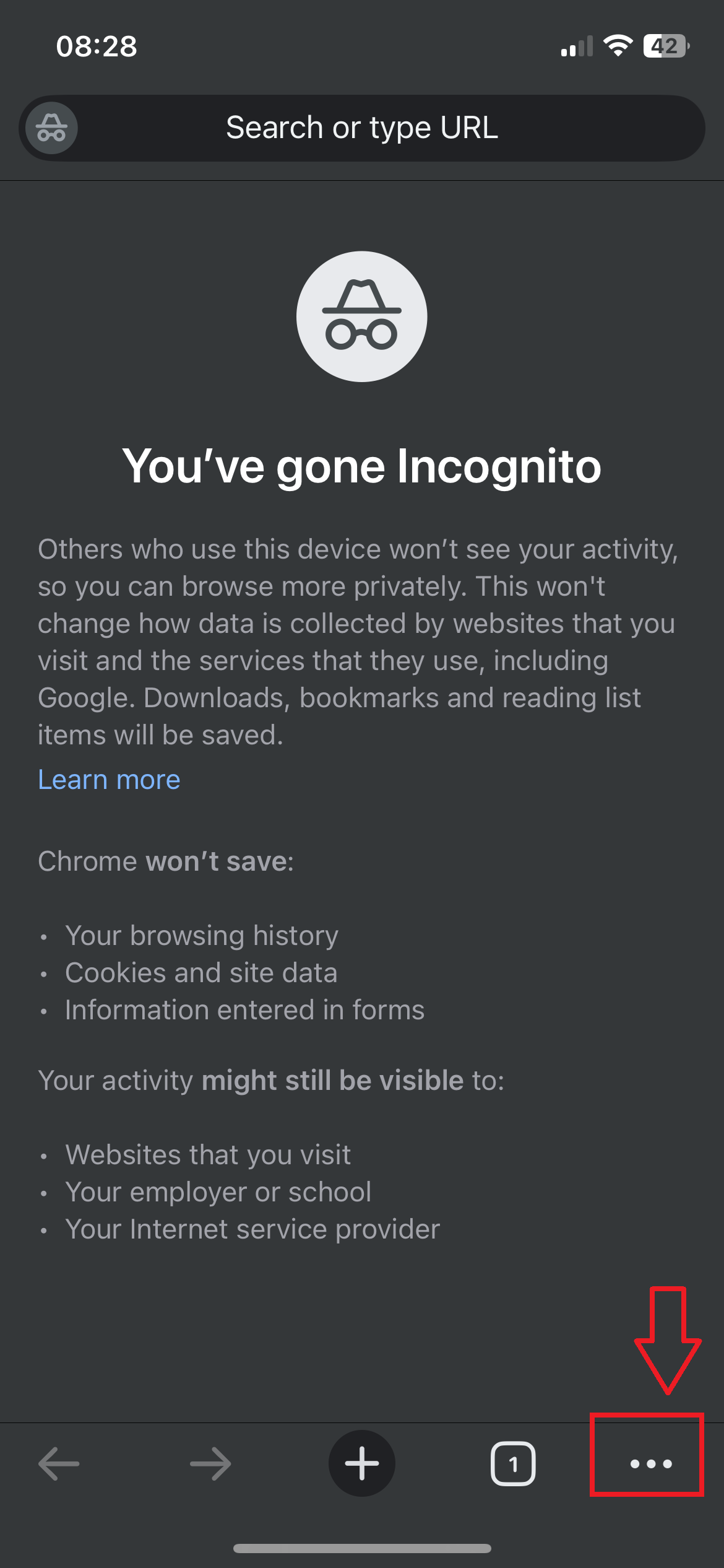 • Apri l’applicazione Google Chrome sul tuo iPhone. Tocca il pulsante "Altro" (tre punti verticali) nell’angolo superiore destro dello schermo.