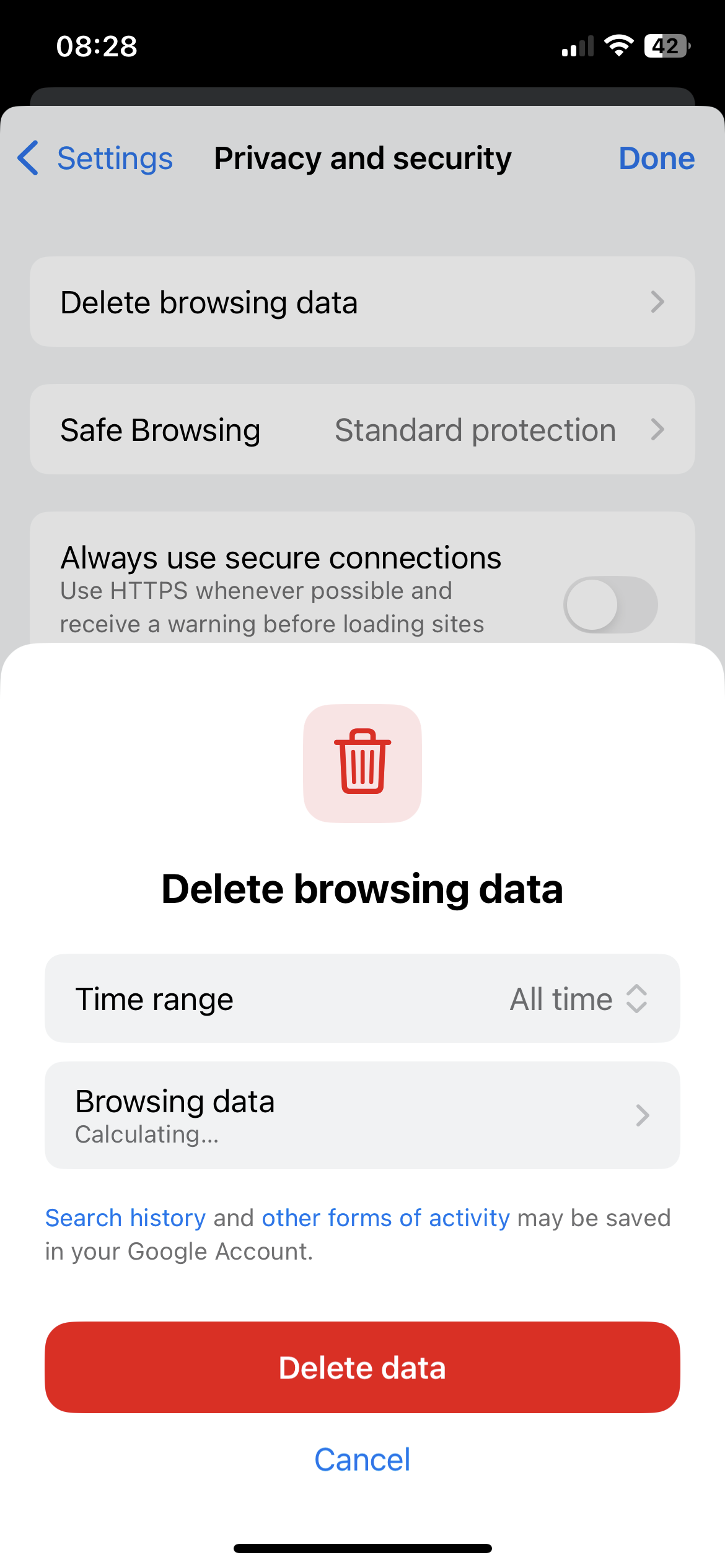 • In basso apparirà "Cancella dati di navigazione". Premi lì per procedere con l’eliminazione.