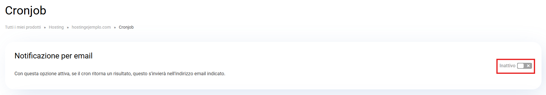 Se desideri ricevere i risultati dell’esecuzione ogni volta che viene eseguito un CRONJob, devi attivare il seguente pulsante: