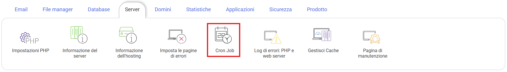 Per configurarlo, accedi alla gestione dell’hosting, nella sezione "Server", e clicca sull’icona CRONJobs.