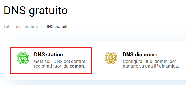 Una volta nella sezione DNS gratuito, clicca sul pulsante "DNS statico".