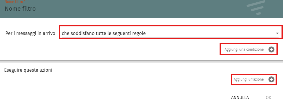 - Per i messaggi in arrivo che: Scegli come verranno applicate le regole del filtro: