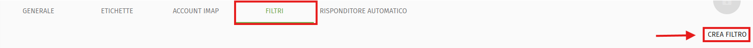 - Successivamente, vai su "Filtri" e clicca su "Crea filtro":