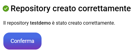 Una volta completati questi campi, fare clic Creare repository. Se tutto è corretto, la dashboard mostrerà un messaggio di conferma che indica che il repository è stato creato correttamente.