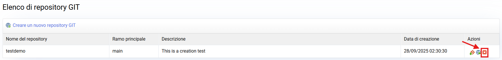Eliminare GIT repository: L'ultima icona consente di eliminare il repository se non ne hai più bisogno.