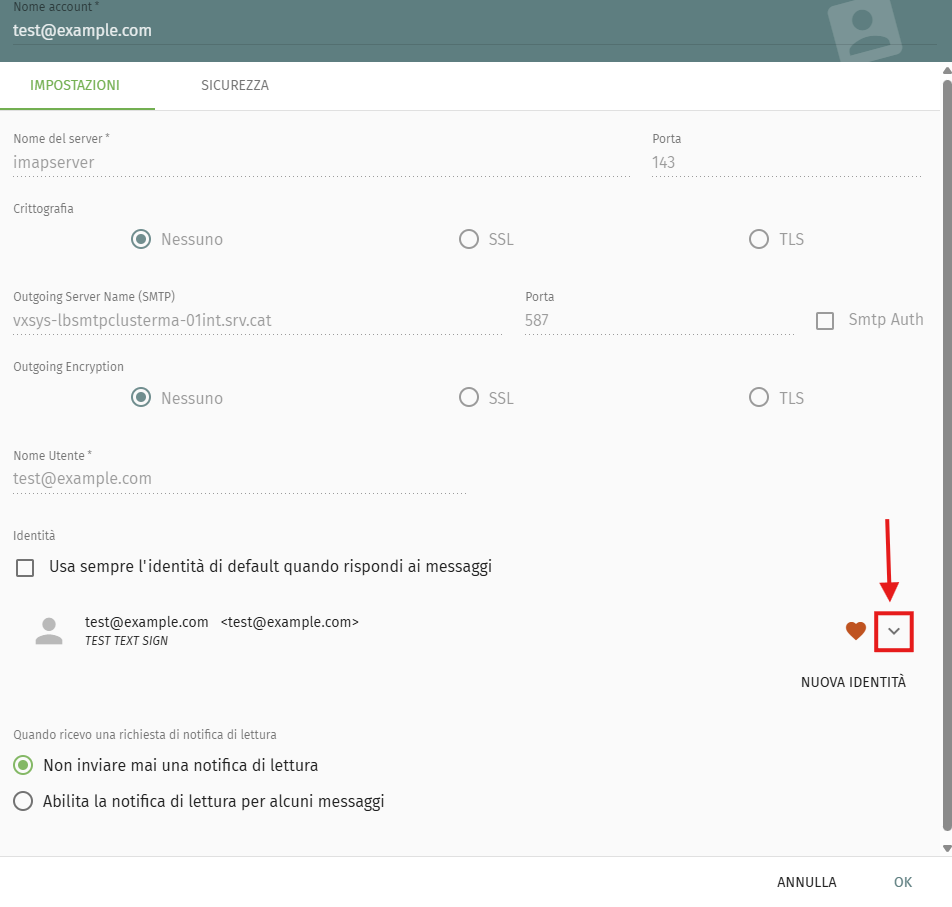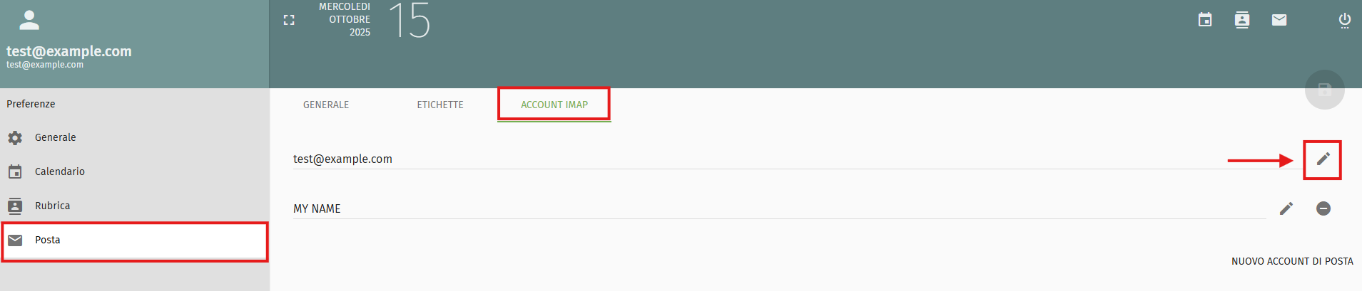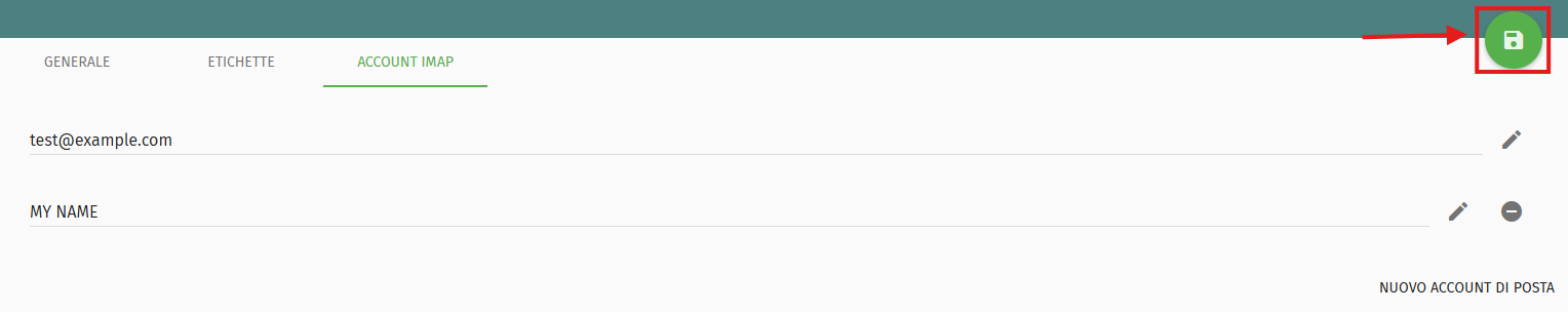 Vai su Posta → ACCOUNT IMAP
