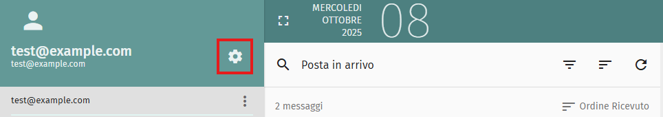 - Accedi al tuo account email in SOGo. Una volta dentro, vai nell’angolo in alto a sinistra e clicca sull’icona delle impostazioni: