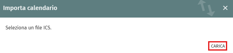 - Apparirà una finestra in cui potrai selezionare il file. Clicca sul pulsante Carica e seleziona il file .ics esportato precedentemente da Roundcube.