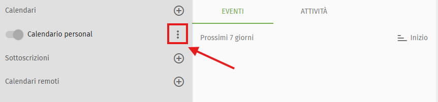 - Seleziona l'opzione Calendario personale e clicca sull'icona dei tre puntini verticali a destra. Se non compare o l'hai eliminata per errore, puoi crearne una nuova: