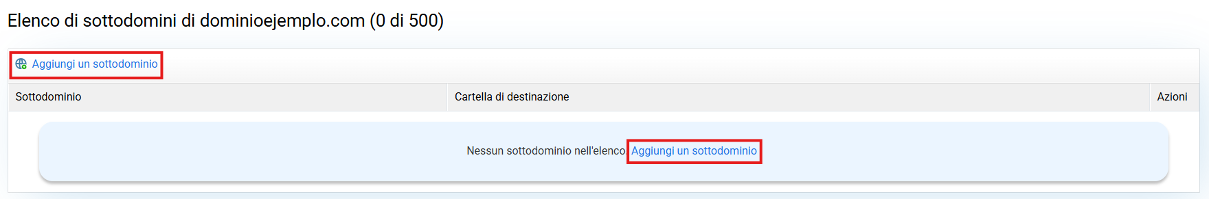 Fai clic su Aggiungi sottodominio.