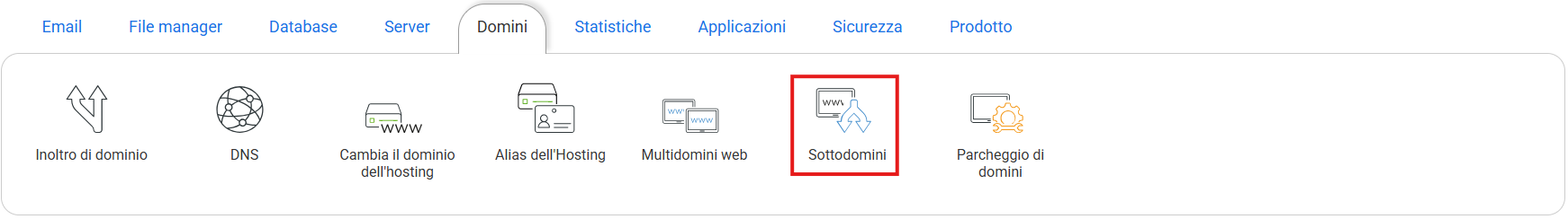 Un sottodominio è una parola scritta prima del dominio (ad esempio: foto.miodominio.com, dove foto è il sottodominio di miodominio.com), per poter categorizzare i contenuti o i servizi del sito web.