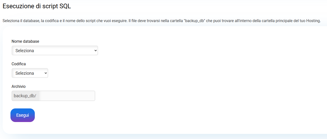 Codifica: puoi selezionare UTF8 o LATIN1, a seconda della codifica del database (generalmente UTF8).