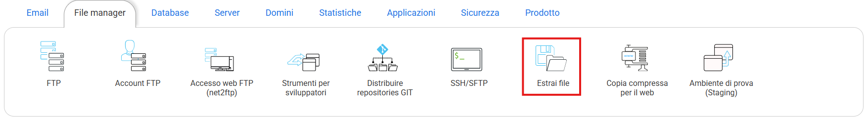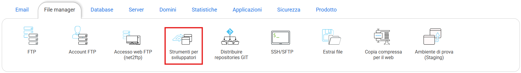 - Dalla gestione dell’hosting cerca la sezione "Gestori di file" e seleziona l’opzione "Hosting per sviluppatori".