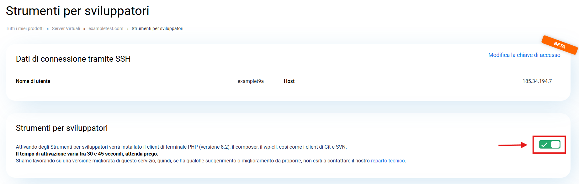 In precedenza, l’attivazione di Composer richiedeva l’intervento del nostro team di supporto. Ora questo processo è stato semplificato e puoi attivarlo direttamente dal pannello di controllo. Segui questi passaggi: