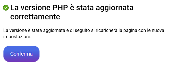 Se tutto è andato correttamente, il pannello mostrerà un messaggio che indica che la versione di PHP è stata aggiornata correttamente.