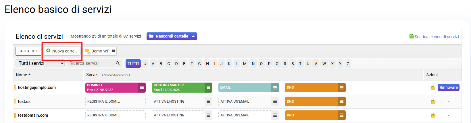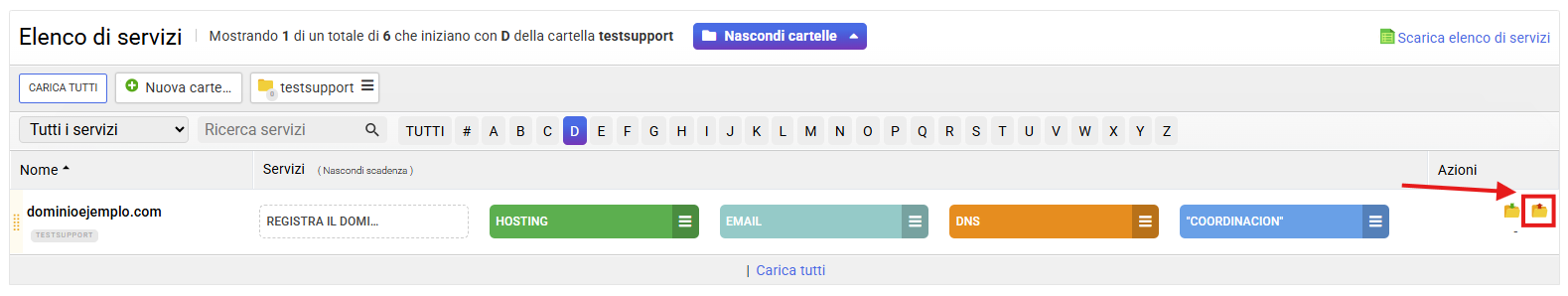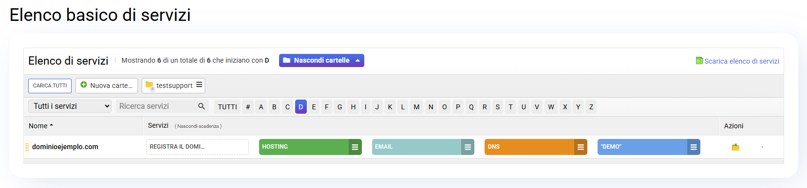 Nel listato base dei servizi puoi organizzare tutti i tuoi prodotti creando cartelle per raggrupparli in base alle tue esigenze. Di seguito spieghiamo come funziona.