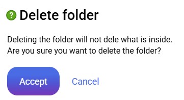 Nel caso in cui tu voglia eliminare la cartella, ti verrà richiesta una conferma. Se fai clic su Accetta la cartella verrà eliminata.
