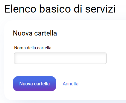 Per prima cosa devi creare una nuova cartella. Per farlo, accedi al pannello di controllo di cdmon e, nel “Listato base dei servizi”, fai clic sull’opzione Crea cartella.