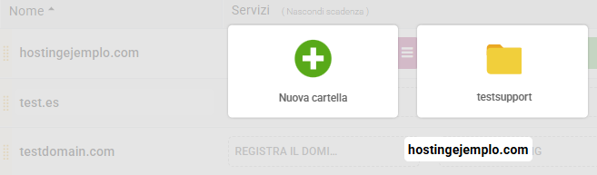 Creare, modificare o eliminare cartelle non influisce sul funzionamento dei domini o degli hosting che hai contrattato.