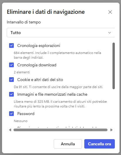 Per prima cosa, prova a svuotare la cache del browser in base alla versione utilizzata: