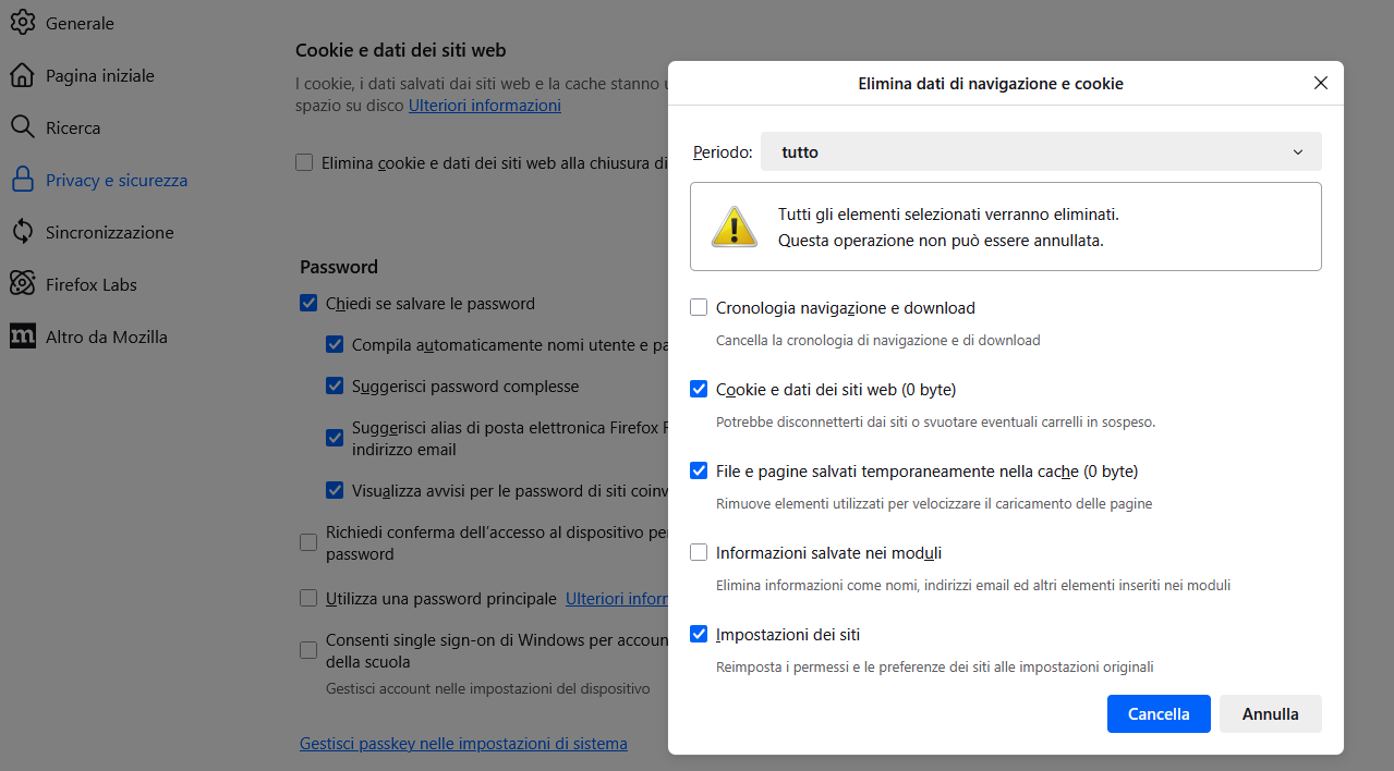 e poi su Cancella dati di navigazione.