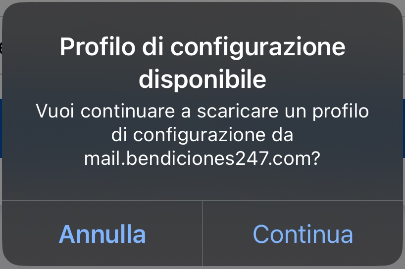 - Utilizzando il link mobileconfig, apri Safari o un altro browser e vai su: https://mail.tuodominio.com/mobileconfig