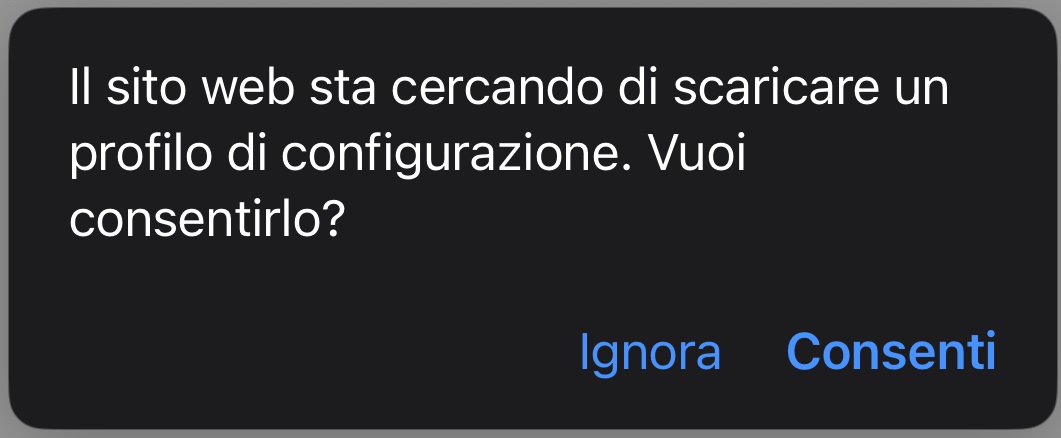 - Il sistema chiederà la conferma per scaricare il profilo. Seleziona “Continua”