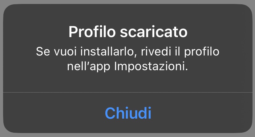 - Vedrai una conferma che il profilo è stato scaricato. Tocca “Chiudi”.