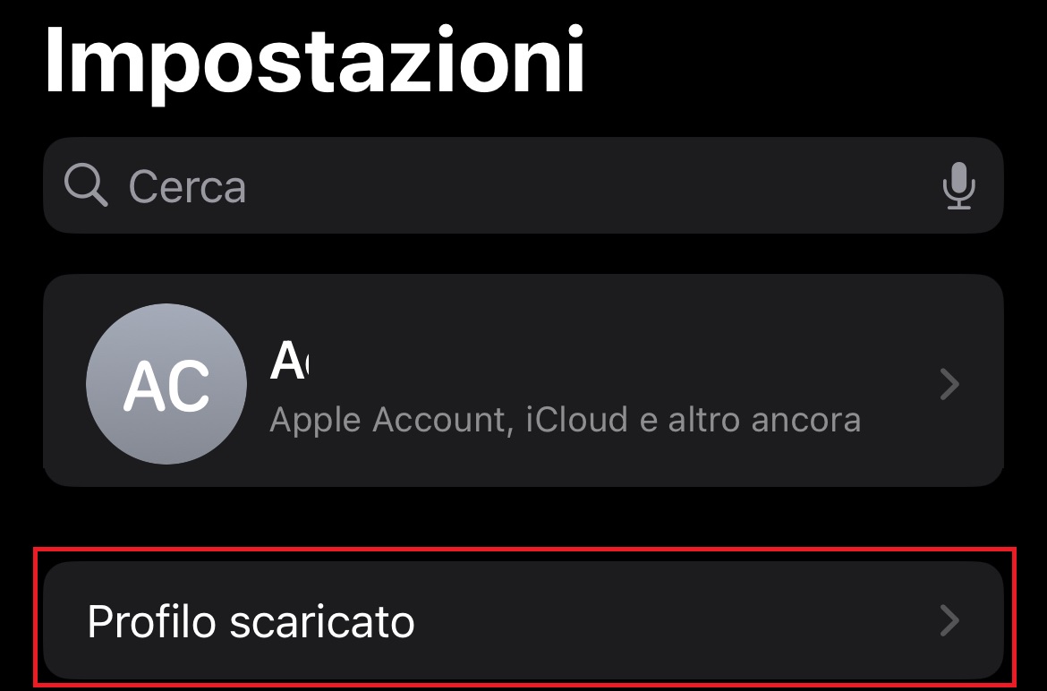 - Apri l’app Impostazioni sul tuo iPhone/iPad. Vedrai l’opzione “Profilo scaricato” appena sotto il tuo ID Apple: