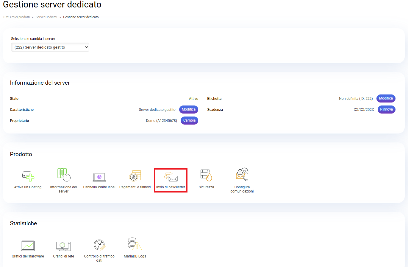In questa sezione è possibile impostare gli invii giornalieri degli hosting del server dedicato gestito.