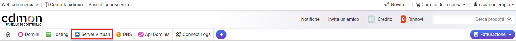 - Autoconfigurazione DNS: Opzione che configura automaticamente il DNS su CDmon.com per il dominio ospitato sul server virtuale.