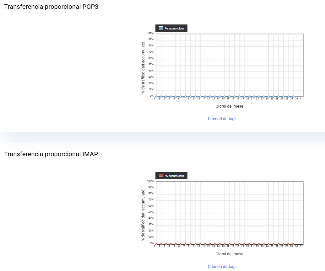 Se clicchi su "Maggiori dettagli" puoi visualizzare il dettaglio del traffico email.