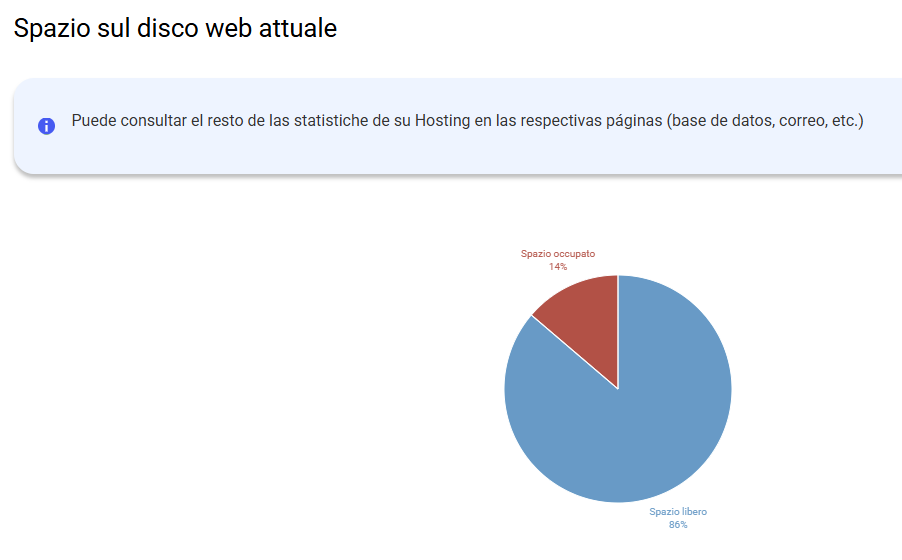 Attraverso il diagramma puoi visualizzare quale percentuale di spazio è occupata rispetto allo spazio libero nel tuo hosting.