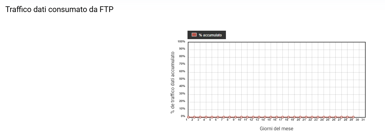 Quando carichi file sull’hosting tramite un client FTP, viene generato questo tipo di traffico. In questa sezione puoi verificare quali utenti FTP hanno consumato traffico.