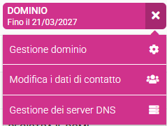 Nel menu a tendina dei domini puoi vedere i seguenti collegamenti: