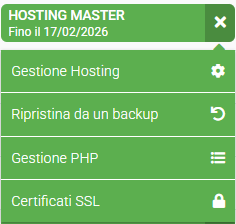 Nel menu a tendina dell’hosting sono presenti i seguenti collegamenti: