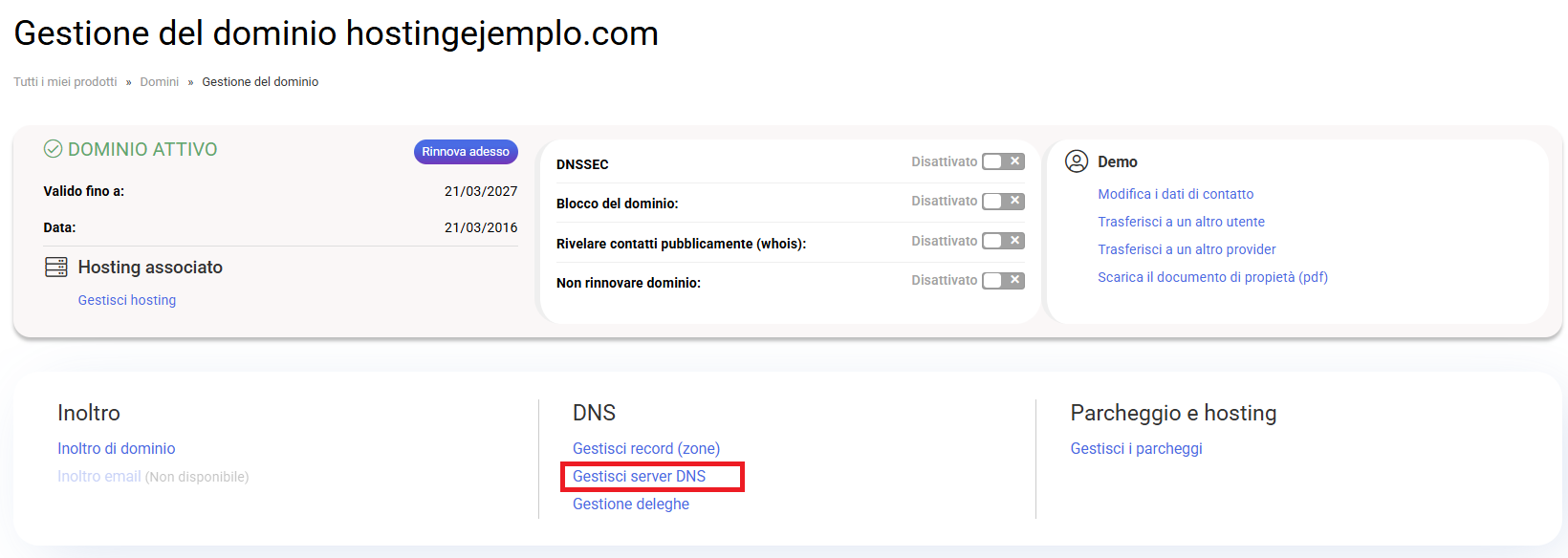 Gestione dominio: come modificare i server DNS in cui punti di dominio indica