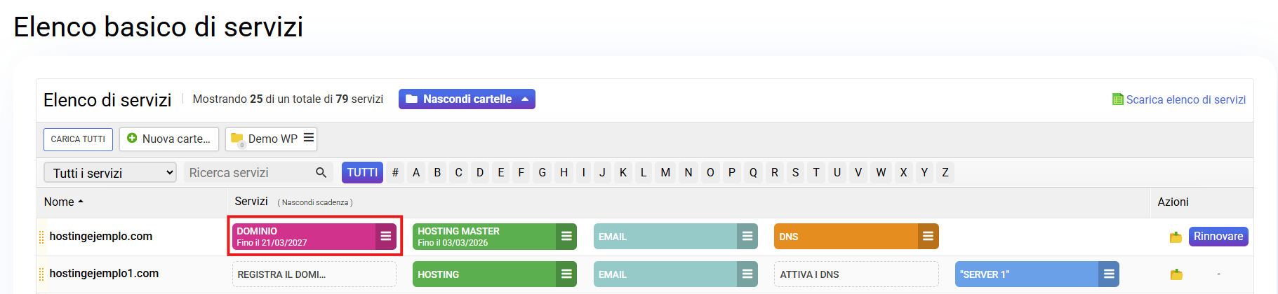 Per modificare i server DNS, devi accedere alla gestione del dominio dal pannello "Elenco base dei servizi".