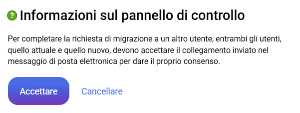Una volta che entrambi gli utenti avranno dato il proprio consenso, la migrazione sarà completata e verrà notificata tramite e-mail.