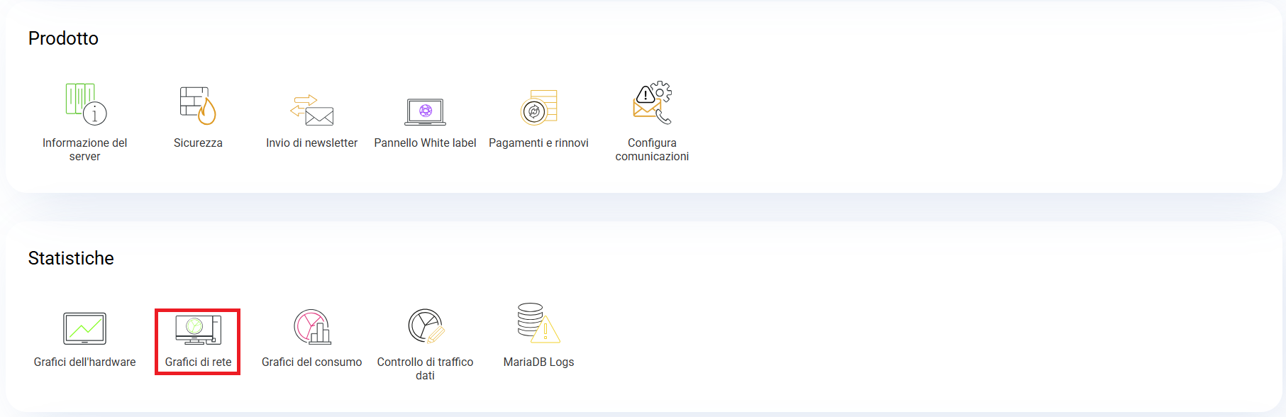 I grafici hardware ti permettono di visualizzare lo stato del tuo server. Per consultarli, accedi alla gestione del server dal tuo pannello di controllo di cdmon e fai clic sull’opzione Grafici del hardware. Nella sezione "Grafici hardware" puoi ...