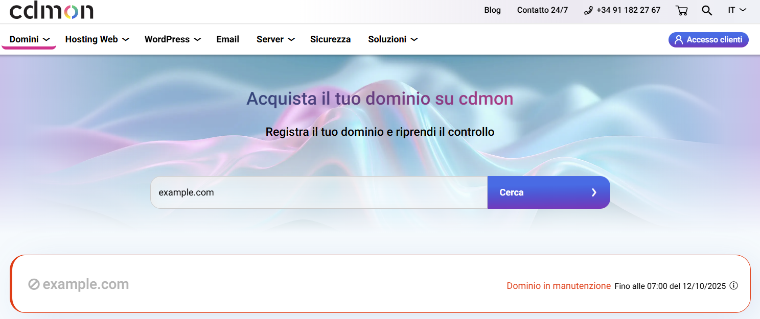 A partire da cdmon può registrare e gestire una varietà di estensioni di dominio. Ogni estensione ha una propria organizzazione che li gestisce e li aggiorna regolarmente. Questo di solito non è ricorrente, ma durante tale processo non sarai in grado di gestire o modificare il tuo dominio registrato in cdmon.