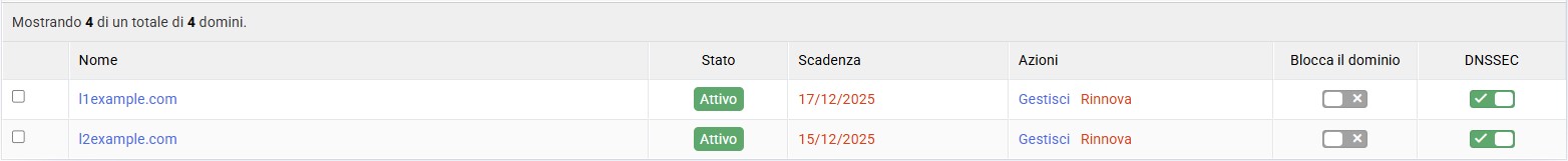 Dalla "Elenco dei domini registrati" puoi gestire i tuoi domini in modo chiaro ed efficace.