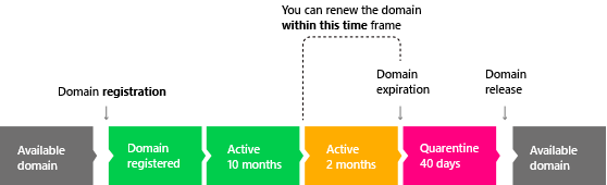 - Periodo di riscatto o redemption period (Quarantena): questo periodo dura 40 giorni, durante i quali il dominio è stato eliminato ma può essere ripristinato e rinnovato a un prezzo superiore rispetto al normale costo di rinnovo.