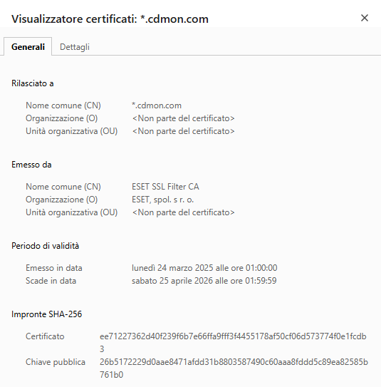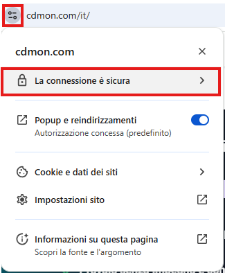Facendo clic sul lucchetto è possibile consultare informazioni dettagliate sull’emittente e sui dati del sito web che stiamo visitando.