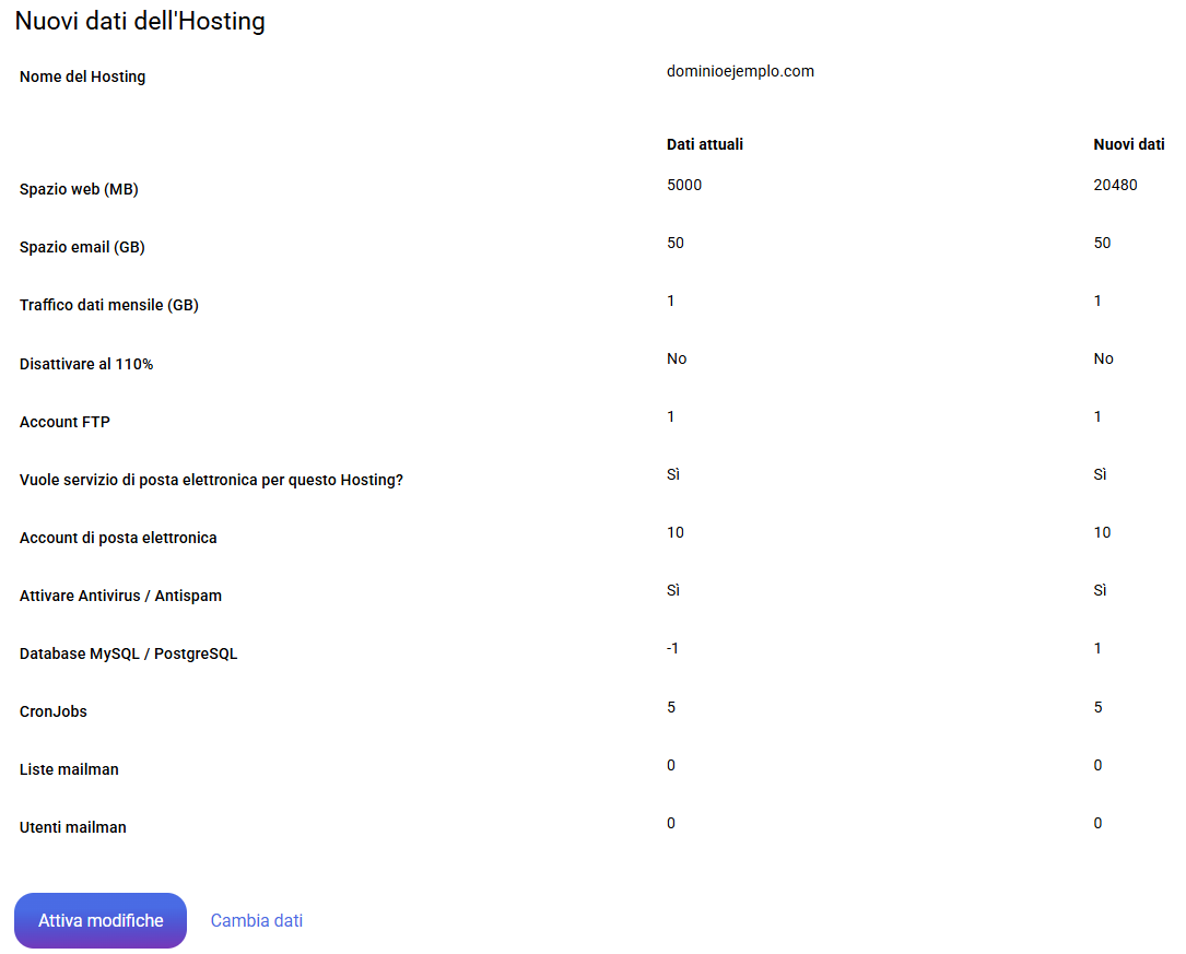 Per applicare queste nuove caratteristiche, è sufficiente cliccare nuovamente su Attiva modifiche e verranno implementate nell’hosting.