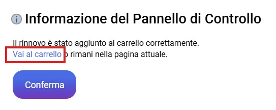 - Nel messaggio informativo fare clic sul link vai al carrello.